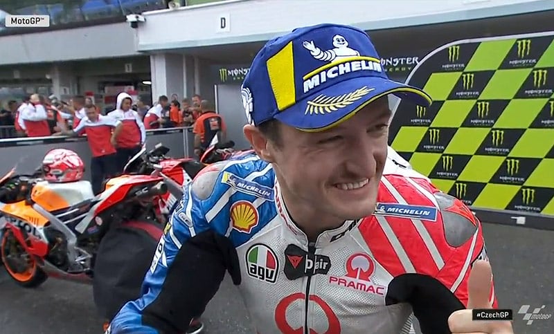 A peine descendu de sa Ducati GP19 du team Pramac après avoir obtenu la 2e place de la grille de départ du Grand Prix de République Tchèque sur le circuit de Brno, Jack Miller s’est confié devant la caméra du site MotoGP.com avec la satisfaction d’être en première ligne malgré une chute dans les derniers instants…