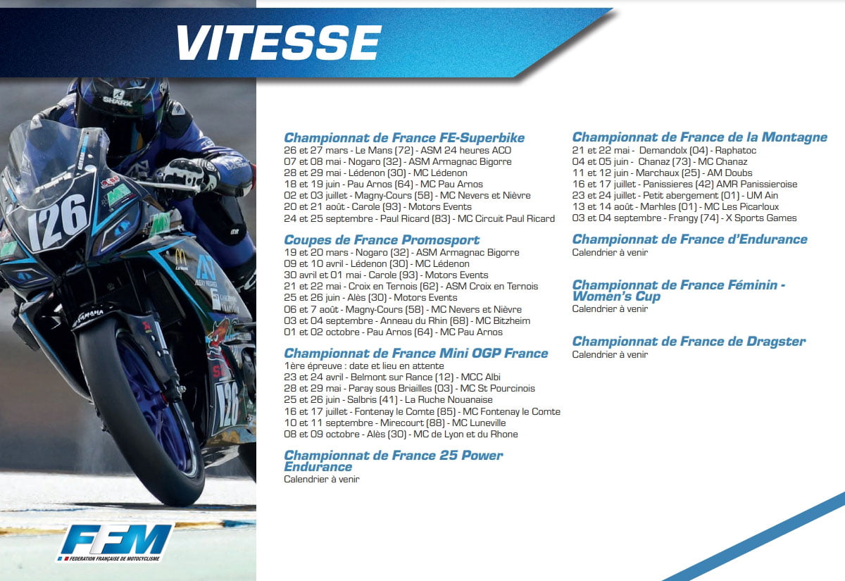 Calendrier Vitesse FFM 2022 : FSBK, Promosport, Mini OGP France, etc…