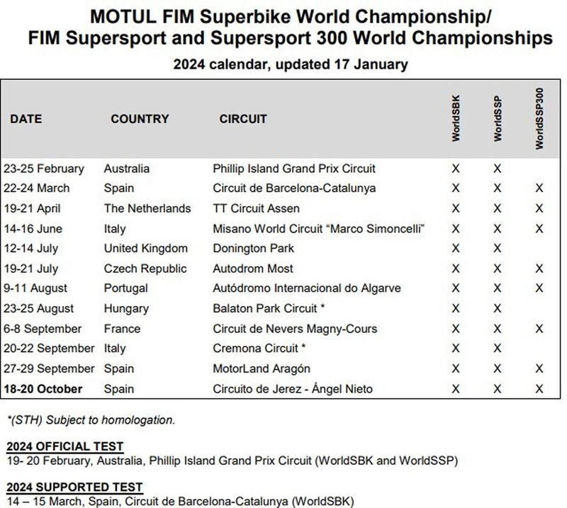 Calendrier WSBK Superbike 2024 : Jerez déplacé devient le 5e doublet WorldSBK-MotoGP