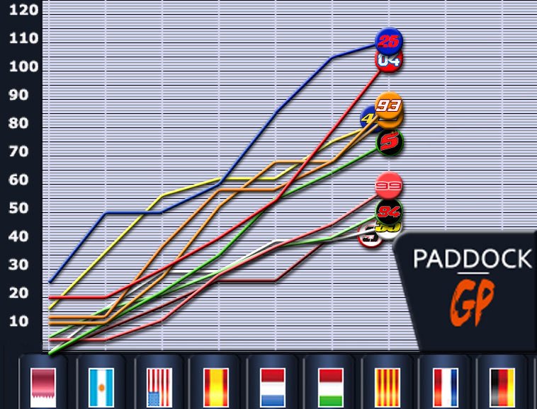 Pour Jorge Lorenzo, « Je suis content pour mon équipe et pour Dovi, car il est incroyable de remporter deux victoires consécutives. Cela aurait semblé irréaliste il y a quelques mois. Je suis également satisfait de ma course, car chaque fois nous trouvons quelque chose de nouveau.