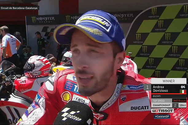 A peine descendu de sa Ducati GP17 officielle après avoir remporté ce Grand Prix de Catalogne, Andrea Dovizioso a répondu au micro du site MotoGP.com.