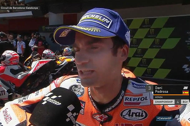 A peine descendu de sa Honda RC213V officielle après être arrivé en troisième position du Grand Prix de Catalogne, Dani Pedrosa a répondu au micro du site MotoGP.com.