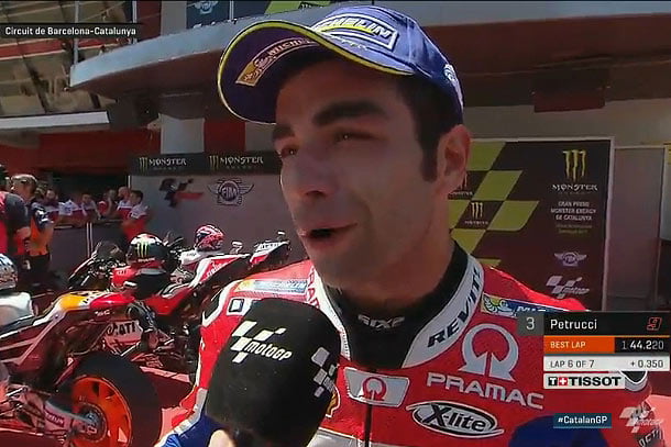A peine descendu de sa Ducati GP17 du team Octo Pramac après avoir réalisé la troisième place sur la grille de départ du Grand prix de Catalogne, Danilo petrucci a répondu au micro  du site MotoGP.com.