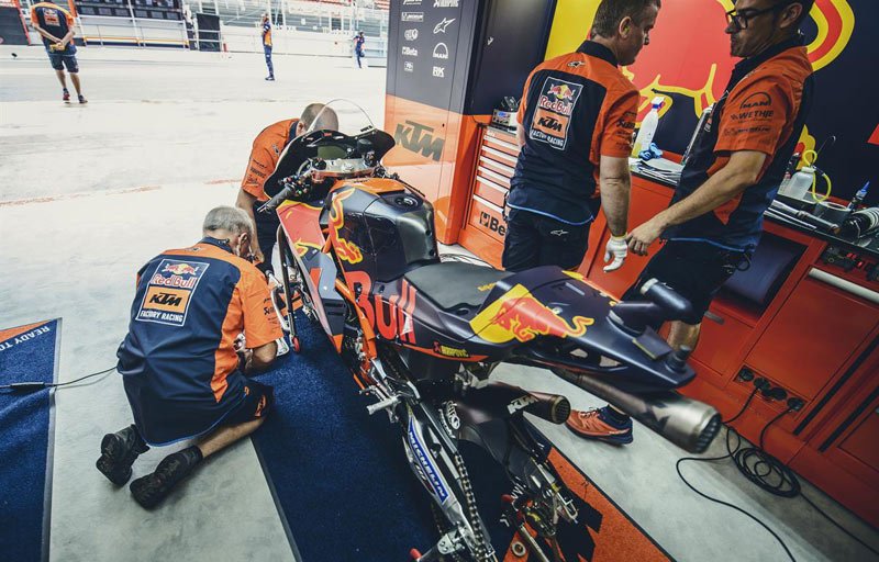 Bradley Smith étant indisponible à cause de son auriculaire gauche, son équipe et l’équipe de test se sont unies pour travailler avec Mika Kallio durant les trois jours, dans le but de comparer des configurations de châssis, de tester de nouveaux carénages et d’affiner les réglages des motos dans des conditions de faible adhérence.