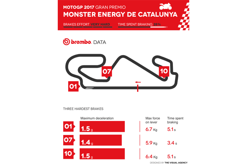 Le circuit de Barcelona-Catalunya est considéré comme très technique et présente des freinages brutaux qui sollicitent considérablement le système de freinage.