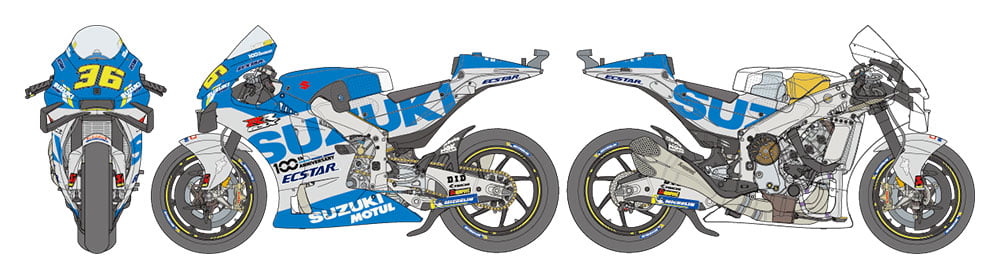 Tamiya a donc mis tout son savoir actuel pour produire la version du 100e anniversaire de la fondation de l’entreprise japonaise et le 60e anniversaire de ses activités en course. Bien sûr, titre mondial oblige, la version de Joan Mir est également possible, tout comme celle de son coéquipier Alex Rins.
