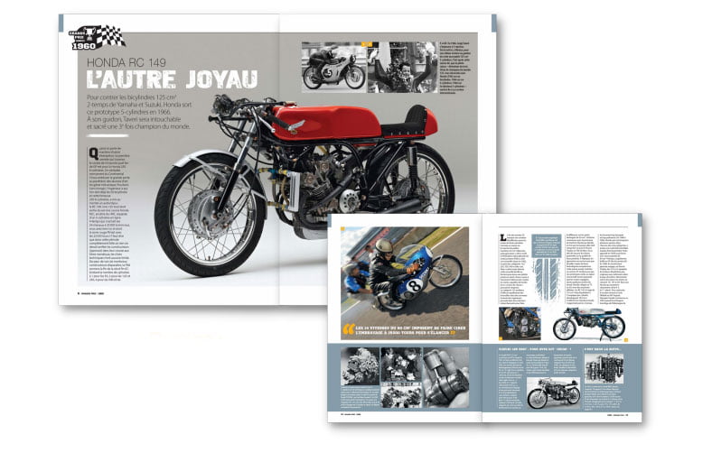 Des incroyables multicylindres 4-temps, 50, 125 et 250 cm3, 5 ou 6-cylindres de la fin des années 60, des 2-temps équipés de distributeurs rotatifs et de boîtes de vitesses pouvant aller jusqu’à 14 rapports, aux dernières machines pré-MotoGP, Grands Prix vous replonge dans ces années 60, 70, 80 et 90. Des décennies où les stars, les rois, les délires mécaniques, les histoires incroyables, les drames et les légendes sont légion. L’âme du MotoGP en quelque sorte.