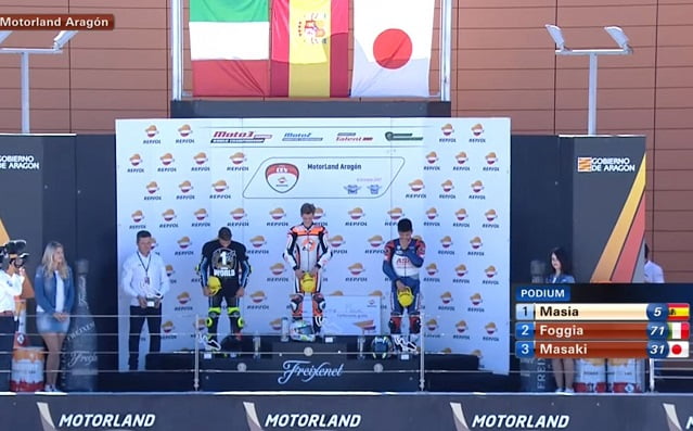 Jaume Masia a superbement remporté l’épreuve de MotorLand Aragon, tandis que Dennis Foggia, qui disputera les Grands Prix Moto3 l’an prochain au sein du team Sky VR46, était sacré Champion du Monde Junior à l’issue d’une saison exemplaire et à deux courses de la fin.