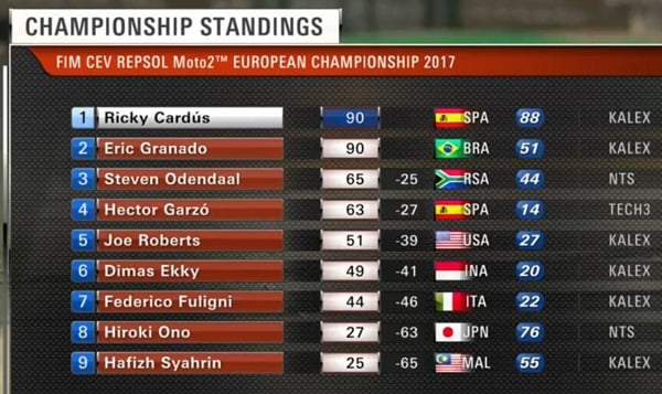 Classement provisoire du Championnat CEV Moto2 :