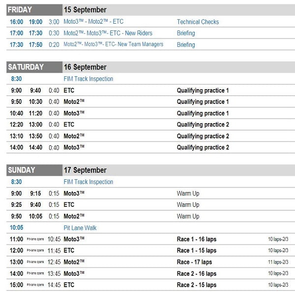 Dimanche va avoir lieu la sixième manche du Championnat d’Espagne pour la Moto3, et la cinquième pour la Moto2. Il ne restera plus que deux épreuves ensuite en Aragon le 8 octobre et le 19 novembre à Valence.