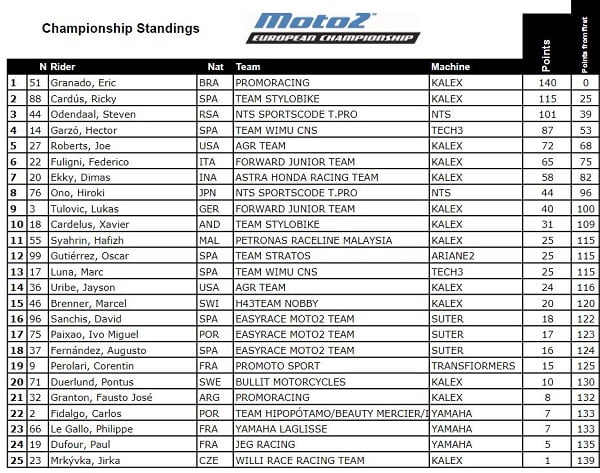 Classement provisoire Moto2 :