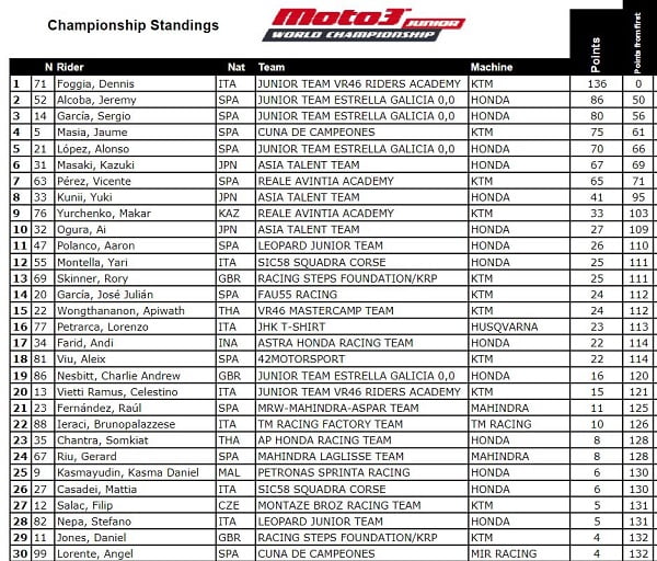 Classement provisoire Moto3 :