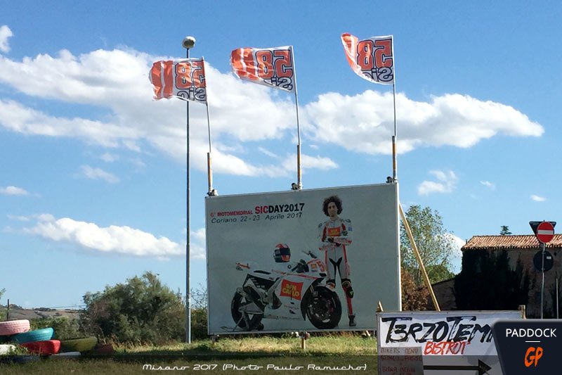 En l’absence de l’intéressé, nous n’avons pas effectué cette année le traditionnel pèlerinage à Tavullia. A la place, nous nous sommes rendus à Coriano, le fief du regretté Marco Simoncelli.