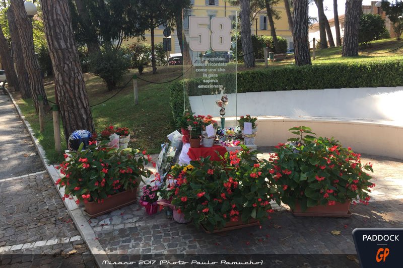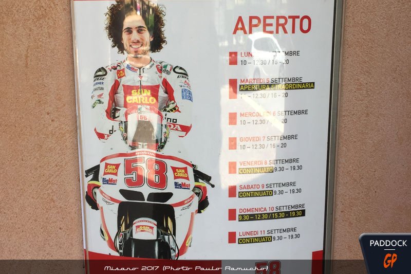 D’oriflamme en machine à flamme (le dimanche soir, voir vidéo), de musée en boutique de souvenir, le tout situé juste devant l’église qui surplombe la citée, la fondation Marco Simoncelli est également particulièrement investie dans des projets caritatifs au Burundi et en République Dominicaine.