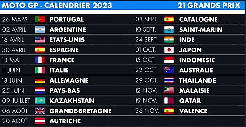 La chaîne cryptée a par ailleurs dévoilé la nouvelle bande-annonce de présentation du MotoGP teintée de bleu, le calendrier de la saison MotoGP ainsi que le nouveau déroulement des week-ends dû aux courses Sprint.