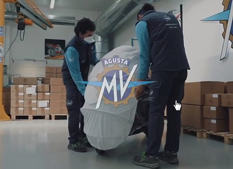 Chez MV Agusta, on adopte une approche plus humoristique en montrant les mesures prises à l’usine de Varese pour aider à empêcher la propagation du virus. Les mesures sont classiques, surveillance de la température des employés et utilisation des masques faciaux, mais la vidéo se termine par la prise de température d’une moto et la pose d’un masque géant sur une F3 800 RC.