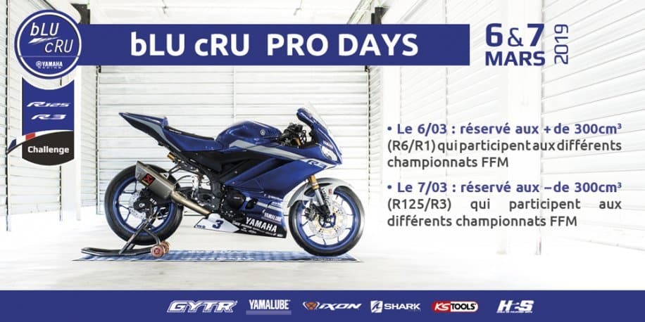 Vous participez à un Championnat ou Coupe de France FFM sur YZF-R1, YZF-R6, YZF-R3 ou YZF-R125 ? Vous êtes de plus engagé à un Challenge Yamaha ? Inscrivez-vous au bLU cRU Pro Days et soyez performant dès la première manche !