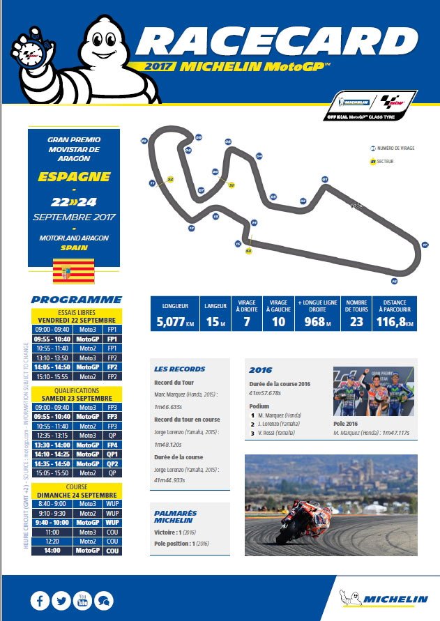 C’est le troisième voyage en Espagne pour Michelin dans ce Championnat du monde MotoGP 2017 avec la 14e manche et le Gran Premio Movistar de Aragón, sur le circuit Motorland Aragón.