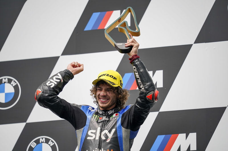 Cinquième au départ, Marco Bezzecchi a immédiatement imposé son rythme. Deuxième à 10 tours du drapeau à damier, il réduit tour par tour son écart avec Jorge Martin jusqu’à moins de deux dixièmes. Deuxième à l’arrivée, il gagne une place et la victoire pour une pénalité infligée à l’Espagnol.