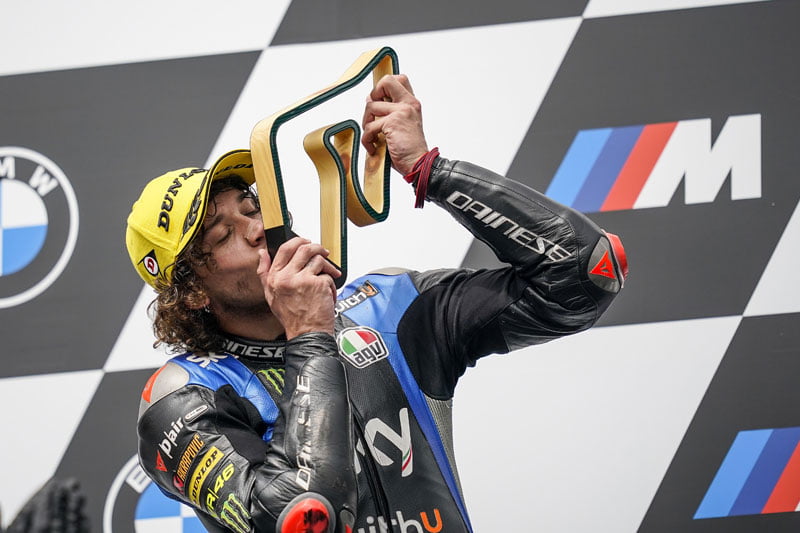 Cinquième au départ, Marco Bezzecchi a immédiatement imposé son rythme. Deuxième à 10 tours du drapeau à damier, il réduit tour par tour son écart avec Jorge Martin jusqu’à moins de deux dixièmes. Deuxième à l’arrivée, il gagne une place et la victoire pour une pénalité infligée à l’Espagnol.