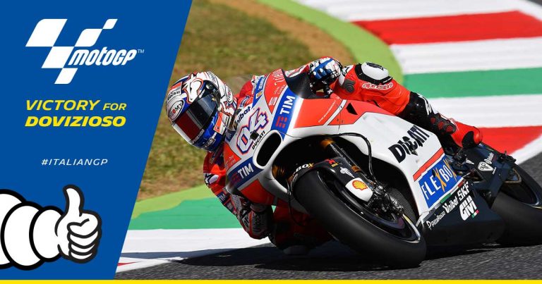Parti de la 3e place sur la grille, Dovizioso (Ducati Team) s’est très vite retrouvé mêlé aux leaders, alors que le héros national, Valentino Rossi (Movistar Yamaha MotoGP), qui avait pris le meilleur départ, a dominé les trois premiers tours. Rossi fut ensuite doublé par son équipier poleman Maverick Viñales (Movistar Yamaha MotoGP) qui a tenu le leadership jusqu’au 14e tour où Dovizioso a porté une attaque décisive et définitive. L’Italien a coupé la ligne d’arrivée en tête après 23 tours très intenses, une victoire d’autant plus impressionnante que le pilote Ducati, malade, avait dû déclarer forfait pour le Warm-up matinal. Derrière Dovizioso, Viñales a pris la 2e place et augmente son avance au championnat. Un autre pilote italien, Danilo Petrucci (OCTO Pramac Racing) signe son 1er podium MotoGP sur le sec et remporte le prix du First Independent Rider.