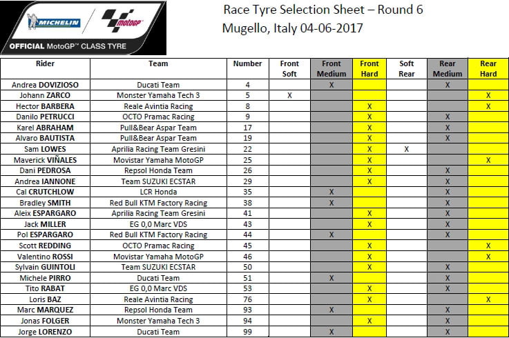 Ce Grand Prix d’Italie a une nouvelle fois souligné la longévité des pneumatiques MICHELIN Power slicks dont chacune des trois versions de gomme avant et arrière a été utilisée en course. Les trois pilotes du podium ont utilisé différentes combinaisons pneumatiques : Dovizioso avait un medium à l’avant et à l’arrière, Viñales avait opté pour un hard à l’avant et à l’arrière et Petrucci avait choisi un hard pour l’avant et un medium derrière. Ceci met en exergue les différentes options proposées aux pilotes et constructeurs, et c’est la première fois cette saison que les six versions de pneus slicks ont été utilisées en course. La longévité et les performances des MICHELIN Power slicks ont permis d’établir un nouveau record de durée de course, 41min32s126, soit près de 4,5 secondes de moins que la précédente référence elle-même réalisée en Michelin l’an passé. Trois marques victorieuses en quatre courses et un 4e vainqueur différent prouvent que les pneus Michelin s’adaptent parfaitement à toutes les machines.