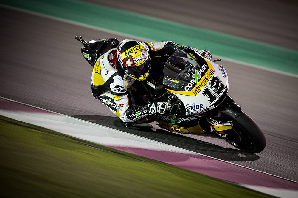 Le championnat du monde 2017 a officiellement commencé sous les projecteurs du circuit de Losail, à une vingtaine de kilomètres au nord de Doha (Qatar). Cette année encore, CGBM Evolution aligne deux teams en Moto2, avec le vice-champion du monde en titre Thomas Lüthi (carXpert Interwetten), ainsi que, sous les couleurs Garage Plus Interwetten, le Zurichois Jesko Raffin et l’Espagnol Iker Lecuona (blessé lors des tests de Jerez de la Frontera, le jeune diamant ibérique est remplacé en ce début de saison par un ancien champion du monde 125 cc, l’Espagnol Julian Simón, un pilote à la grande expérience).