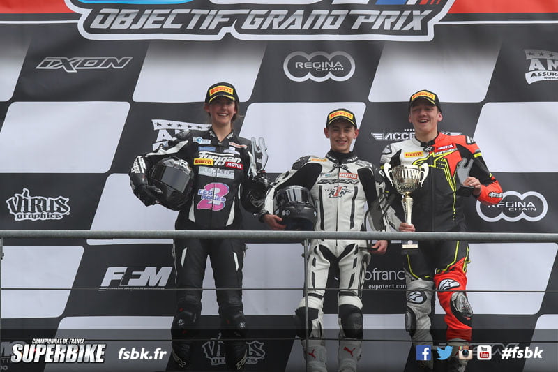 Cédric TANGRE (Suzuki) qui s’est élancé depuis la 9ème place sur la grille de départ, donne le change pendant la course et remonte à vive allure vers le groupe de tête. Il fait honneur à son titre acquis l’an passé et déloge Guillaume ANTIGA (Yamaha) dans les derniers tours pour compléter le podium de cette course à rebondissements.