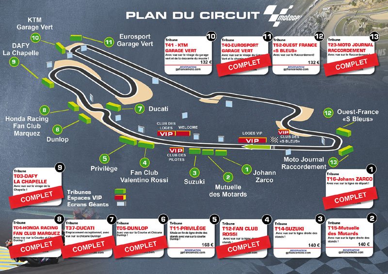 A peine plus de 2 semaines après l’ouverture de la billetterie, les réservations pour le HJC Helmets Grand Prix de France Moto 2018 continuent à un rythme effréné et c’est désormais au tour des tribunes Eurosport/Garage Vert et Moto Journal/Raccordement d’être complètes, portant ainsi à 8 le nombre de tribunes fermées à la vente.