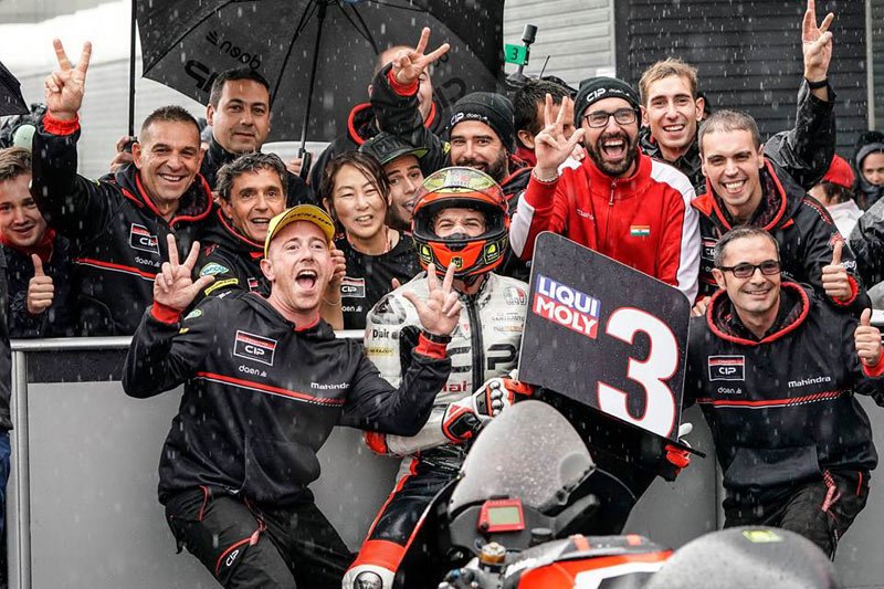 Marco Bezzecchi : « C’est incroyable, les conditions étaient vraiment difficiles. Je n’ai pas fait un super départ mais j’ai vite réussi à récupérer quelques places puis à dépasser encore pour prendre la 3ème position. Je suis resté concentré pour ne pas commettre d’erreurs et m’offrir ce premier podium. Je remercie tout le Team CIP qui a beaucoup travaillé, Mahindra et toute la VR46 Riders Academy. »