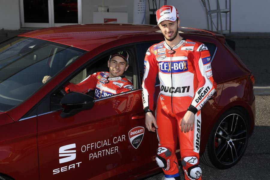 Martorell, 21/04/2017. – Les pilotes de l’équipe Ducati, Jorge Lorenzo et Andrea Dovizioso, seront les ambassadeurs SEAT lors de la saison actuelle du MotoGP. Les deux pilotes promouvront l’image de la SEAT Leon CUPRA, le modèle le plus puissant de l’histoire de la société espagnole.