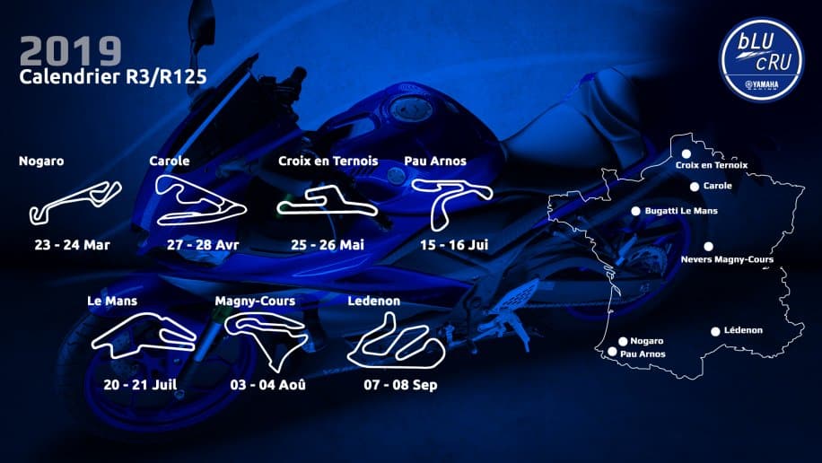 Les Challenges Yamaha YZF-R125 et YZF-R3 se poursuivent en 2019. Intégrés aux Coupes de France Promosport, ces challenges constituent la première étape du programme bLU cRU mis en place par Yamaha afin d’accompagner les pilotes vers un niveau professionnel. Et cette année, c’est au guidon des nouvelles Yamaha YZF-R125 et YZF-R3 que les pilotes pourront prendre part à la compétition.
