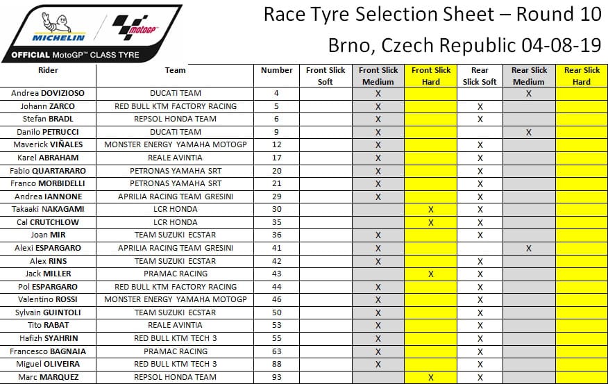 Michelin reste à Brno pour une journée de tests officielle lundi afin de poursuivre le développement de ses pneumatiques pour 2020. Le paddock se rendra ensuite directement à Spielberg, en Autriche, pour la 11e manche de la saison MotoGP dimanche 11 août.