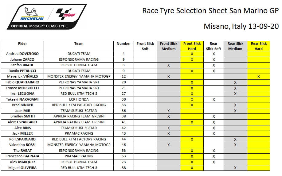 « Nous restons à Misano pour des tests mardi où, j’en suis sûr, différentes configurations de pneus vont être testées par les pilotes pour voir ce qui peut être amélioré et optimisé pour leurs machines respectives avant la course du weekend prochain sur ce même circuit. »