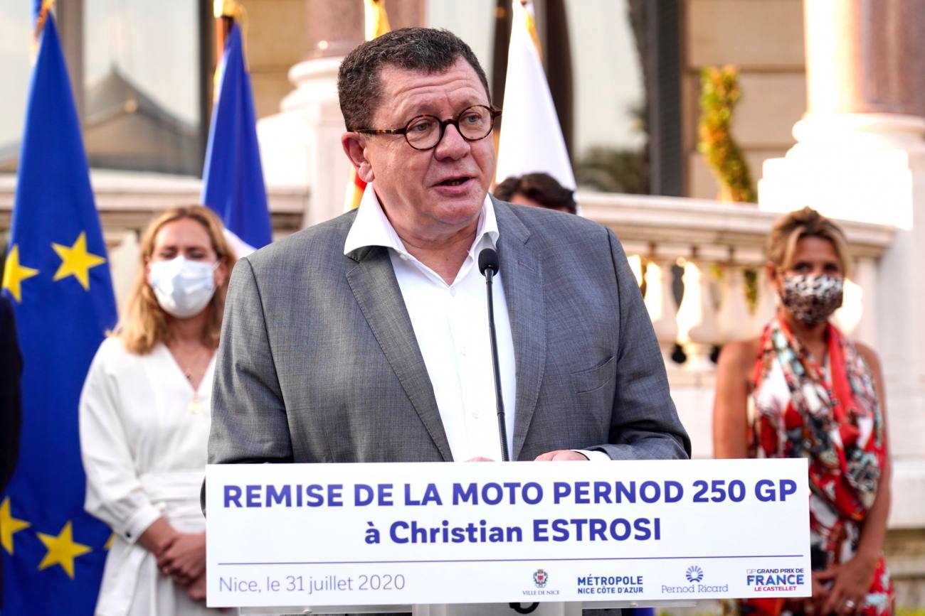 Séquence émotion donc devant le parvis de la Villa Masséna lorsque la mythique Pernod Compétition 250 fut remise par Alexandre Ricard à Christian Estrosi. Machine sur laquelle ce dernier évolua entre 1981 et 1983 et qui trônera désormais fièrement au Musée National des Sports, récipiendaire de ce don.