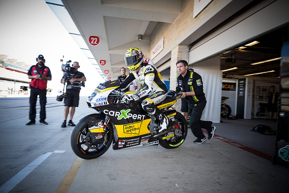 Championnat du monde (3/18): 1. Morbidelli, 75 points; 2. Lüthi (carXpert Interwetten), 56; 3. Oliveira, 43; 4. Nakagami, 32; 5. Vierge, 25; 6. A. Marquez, 24; 7. Baldassari (ITA, Kalex), 21; 8. Marini, 20; 9. Corsi, 19; 10. Aegerter, 18. Puis: 18. Raffin (Garage Plus Interwetten), 5. 22 classés.Austin/COTA (USA). GP of the Americas Moto2: 1. Morbidelli (ITA, Kalex), 19 tours, 41’20.078 (152.000 km/h); 2. Lüthi (SWI, Kalex, carXpert Interwetten), à 2.633; 3. Nakagami (JPN, Kalex), à 6.809; 4. A. Marquez (SPA, Kalex), à 9.852; 5. Aegerter (SWI, Suter), à 10.927; 6. Oliveira (POR, KTM), à 13.029; 7. Corsi (ITA, Speed Up), à 13.335; 8. Schrötter (GER, Suter), à 13.754; 9. Vierge (SPA, Tech 3), à 18.079; 10. Marini (ITA, Kalex), à 21.418; 11. Syahrin (MAL, Kalex), à 21.430; 12. Quartararo (FRA, Kalex), à 21.736; 13. Siméon (BEL, Kalex), à 21.974; 14. Cardus (SPA, KTM), à 24.245; 15. Navarro (SPA, Kalex), à 24.863. Puis: 21. Raffin (SWI, Kalex, Garage Plus Interwetten), à 38.953. 25 classés. Lecuona (SPA, Kalex, Garage Plus Interwetten) a été volontairement laissé au repos.