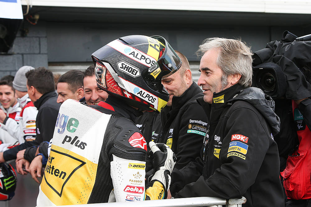 Froid – 10 degrés dans l’air au moment de la séance décisive en Moto2 -, pluie et vent violent, les chutes ont été nombreuses, dont celles d’Iker Lecuona et Robin Mulhauser (carXpert Interwetten), par bonheur sans conséquences physiques. Aux avant-postes dès les premières minutes, Thomas Lüthi n’a pas évité une petite alerte, mais il a pu relever sa moto et poursuivre son travail, s’offrant comme cerise sur le gâteau sa troisième pole position de la saison, après Le Mans et Assen.