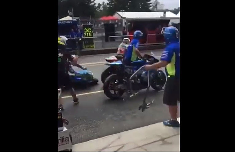 Ce fut bien le cas pour Aleix Espargaro lors du dernier Grand Prix, sauf que ce dernier a démarré en forçant le passage sur son mécanicien, et donc sur Andrea Iannone qui arrivait.