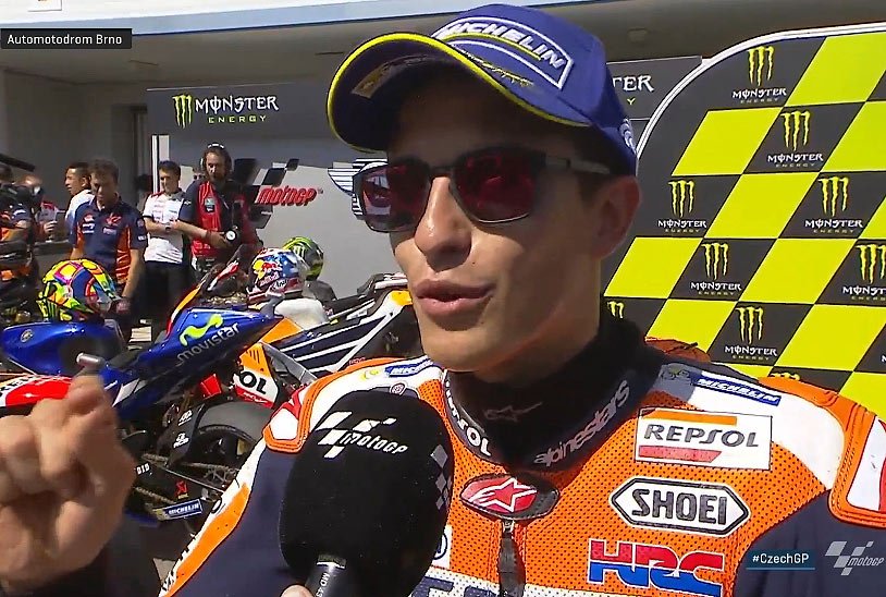 A peine descendu de sa Honda RC213V officielle après avoir réalisé la pole position de ce Grand Prix de la République tchèque à Brno, Marc Marquez s’est exprimé au micro du site MotoGP.com.