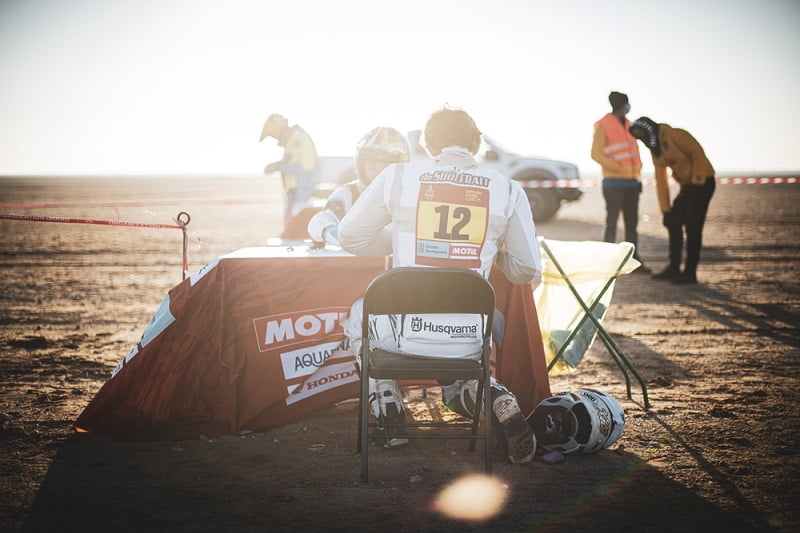 Au premier pointage, c’est donc le Polonais Maciej Giemza qui créait la surprise et prenait temporairement la tête sur sa Husqvarna, devant Joan Barreda, Kevin Benavides, Walkner et Sam Sunderland. Pablo Quintanilla n’était pas non plus en reste, le Chilien parvenant à reprendre sur la première centaine de kilomètres parcourue les 45 secondes qui le séparaient au général du Français Adrien van Beveren.