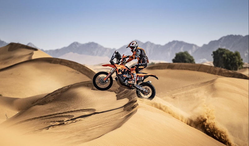 Tous les entraînements et les conseils des pilotes du team officiel de Mattighofen ne seront donc pas vains, mais c’est à un gros morceau que va maintenant s’attaquer le natif de Terni, avec 12 spéciales et 8 375 kilomètres au programme, du 1er au 14 janvier. Danilo Petrucci fait partie des quatre pilotes officiels KTM, aux côtés de l’Autrichien Matthias Walkner champion du monde 2021, de l’Australien Toby Price et de l’Argentin Kevin Benavides vainqueur du Dakar en 2021, mais son expérience des rallyes-raids est encore à construire, face aux 167 autres pilotes inscrits à la classique du tout-terrain.