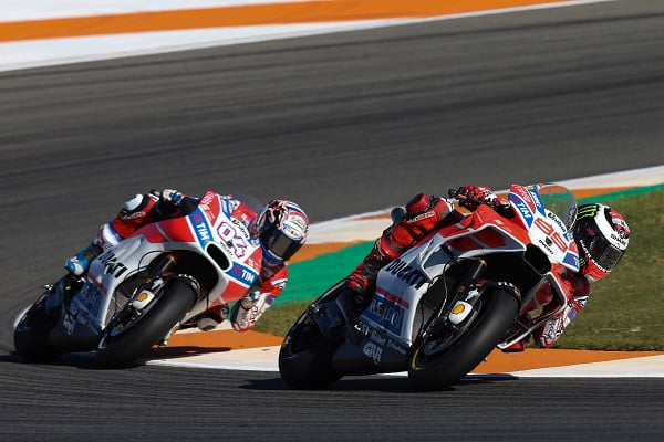 Abondance de biens ne nuit pas, mais si on retrouve Jorge Lorenzo et Andrea Dovizioso à la lutte pour le titre lors de la dernière course à Valence, il va falloir des nerfs solides dans le stand Ducati. L’édition 2017 du GP de Valence n’aura alors été qu’un avant-goût des festivités (voir photo ci-dessus).