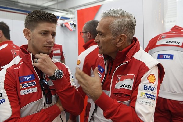 Selon Davide Tardozzi, team manager de l’équipe Ducati Corse en MotoGP, « Casey a été très clair par rapport à la direction à suivre, et maintenant il incombe à Gigi et aux ingénieurs de gérer l’information qu’il nous a donnée. Il soutient toutes ses idées et ses suggestions avec des faits, et il a été aussi impressionnant que d’habitude.