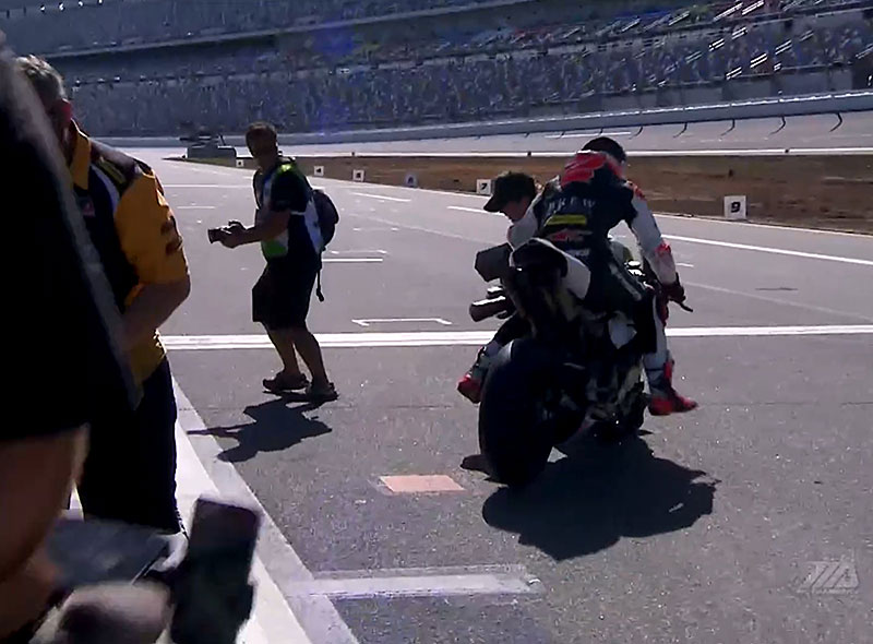 There was chaos at the start of the DAYTONA 200 as several riders went down going into turn one. pic.twitter.com/9FvUaRaU3E