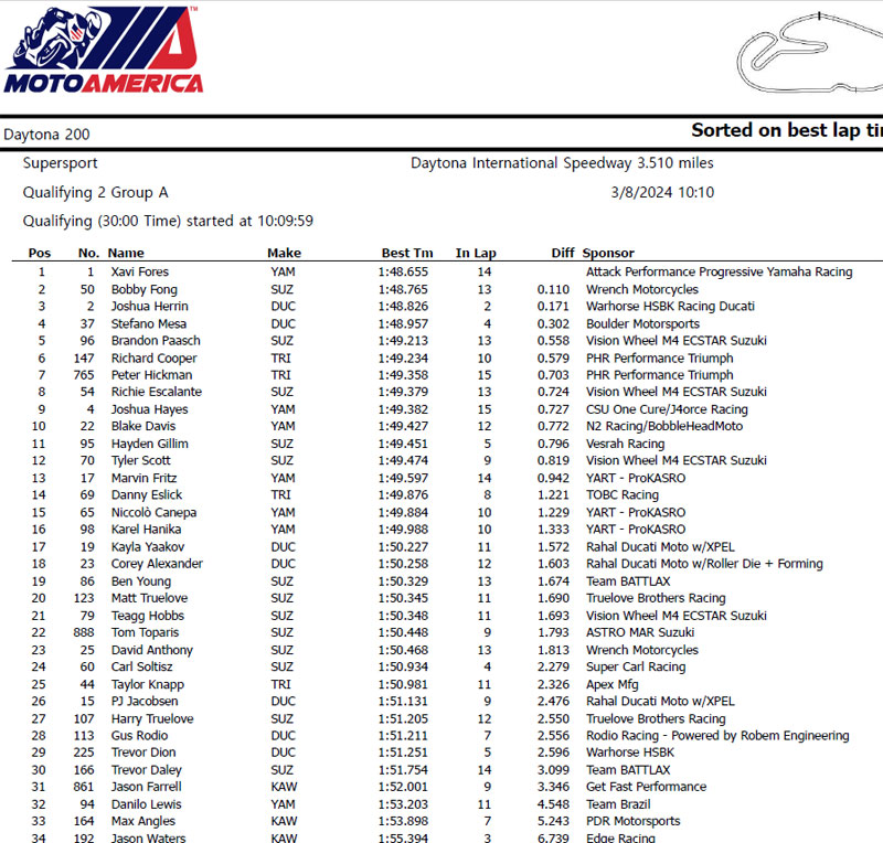 15h10 – 15h25 Daytona Supersport Group A Warm Up (15 min)