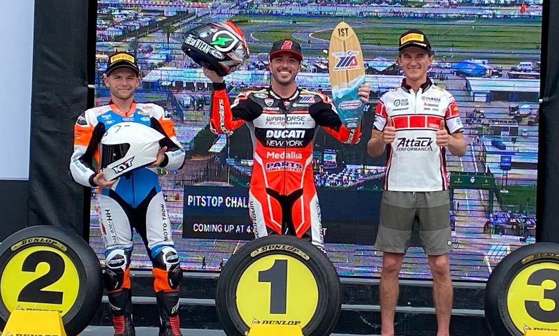 Là, Josh Herrin (Warhorse HSBK Racing Ducati NYC) faisait parler sa Ducati Panigale V2 en réalisant 1’50.088, seulement un centième de seconde devant la Yamaha de Sheridan Morais (Syntainics Racing Team ) !