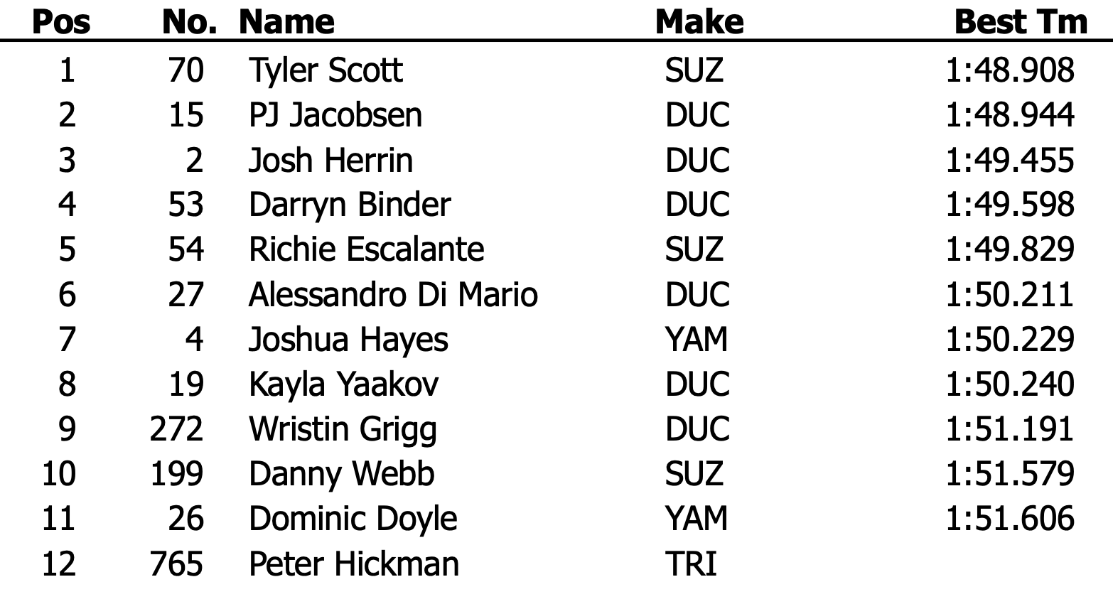 Daytona 200 2026 – Qualifications : Le classement du time attack :