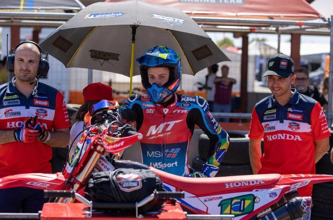 « Je n’ai jamais couru à Forcarei », avait déclaré Diogo Moreira avant la course. Après la manche à Alcarràs, en Championnat du Monde Supermotard, le rookie Moto3 a également disputé la deuxième épreuve 2022 du championnat d’Espagne, catégorie SM Junior avec le Team SGR Grau Racing. Et heureusement qu’il faisait ses débuts sur cette piste : au sommet des essais libres, il se répète aux essais chronométrés, puis mène également les qualifications devant ses coéquipiers Ferrán Cardús et Sylvain Bidart (SM Pro). Précisément le trio de pilotes qui occupera l’intégralité du podium de la première manche, remportée par Diogo Moreira (auteur du temps de référence également au warm up), qui clôture ensuite en P2 dans la deuxième course, précédé par le français Sylvain Bidart. Mais peu de changements : une victoire et une deuxième place lui permettent de triompher sur le circuit A Madalena ! A cette occasion également, Moreira est confirmé comme un véritable as de la spécialité.