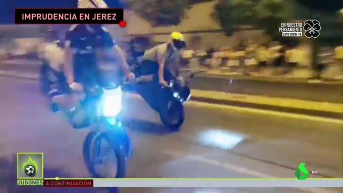 Pendant ce temps, et Carlo Pernat l’avait pressenti, des rassemblement incontrôlés autour de motos de cross en wheeling ont commencé à avoir lieu sur l’avenue Blas Infante de Jerez, sans la moindre précaution sanitaire comme le montre par exemple la vidéo ci-dessous.