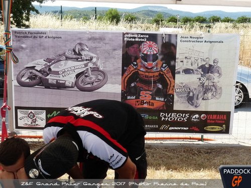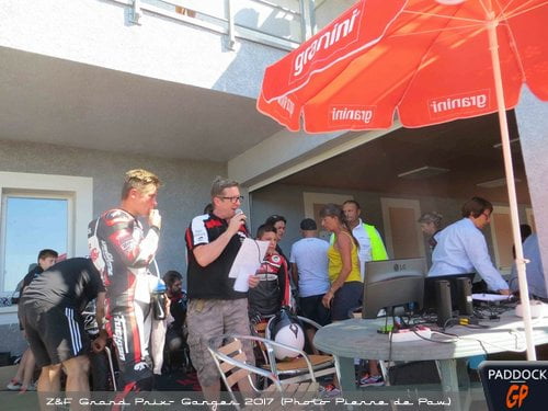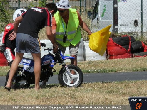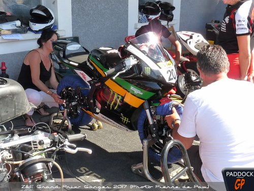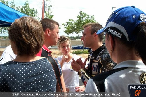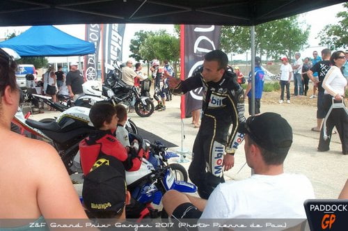 Encadrement très sérieux….Commissaires de piste, ambulance SAMU; tout est géré par Laurent Fellon. La F.F.M est là, partie prenante de cette initiative maintenant reconnue. Ça parlait même Espagnol dans les stands car un certain Vinales roulait, cousin de « qui vous savez ». Et un Espagnol qui vient rouler chez ZF en France,c’est une sacrée reconnaissance.